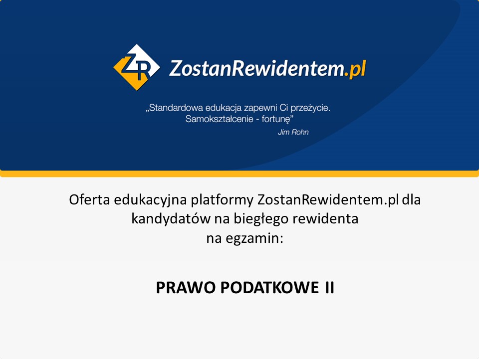 Specjalnie dla Was na platformie zostanrewidentem.pl kolejne materiały edukacyjne. W najnowszej ofercie długo wyczekiwane materiały z Prawa podatkowego II (sesja III).